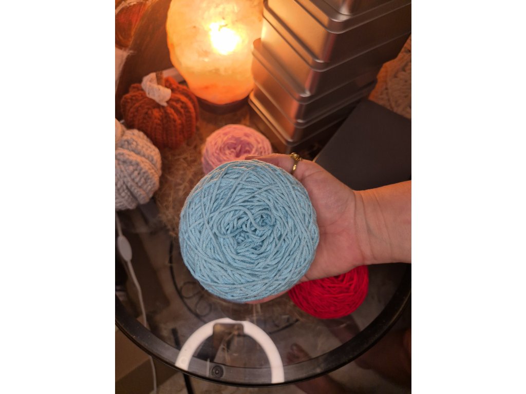 - klubko směsové příze (bavlna/akryl) cca 40g - na výběr v odstínech modré, růžové, červené, bílé, oranžové, fialové a další